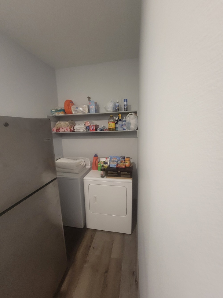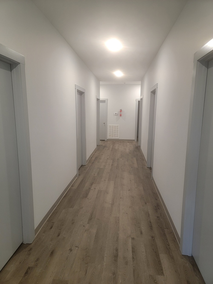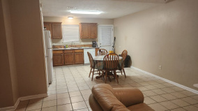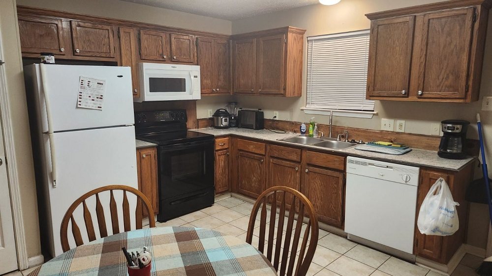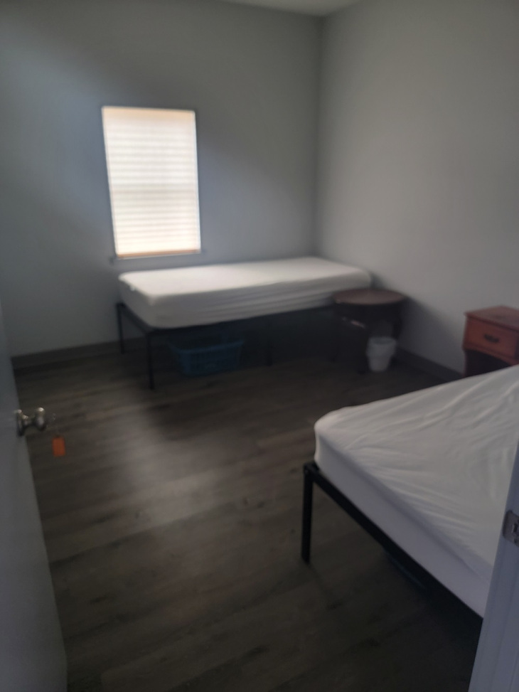 Our second home is only 2 miles away! Extremely close and still within driving distance to many local shops and business. All of our homes are fully furnished, TV, washers & dryers, oven, fridge, stove, microwave, dishes, you name it. Basically all you'll need to bring is your clothes, toothbrush, and other toiletry items and you're all set. This home is set up more like a hotel, with 1 main hallway and rooms down both sides. Here's some pics.